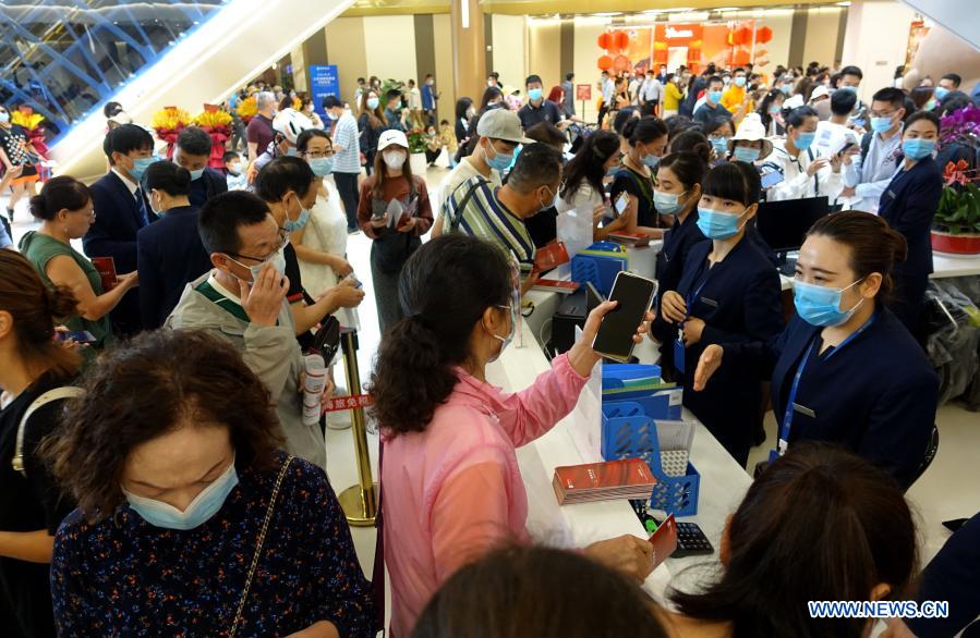 Consumers shop at a newly opened duty-free shop in Sanya, south China's Hainan Province, Dec. 30, 2020. Three new offshore duty-free shops opened on Wednesday in south China's island province of Hainan to promote tax-free consumption, according to the provincial department of commerce. (Xinhua/Zhao Yingquan)