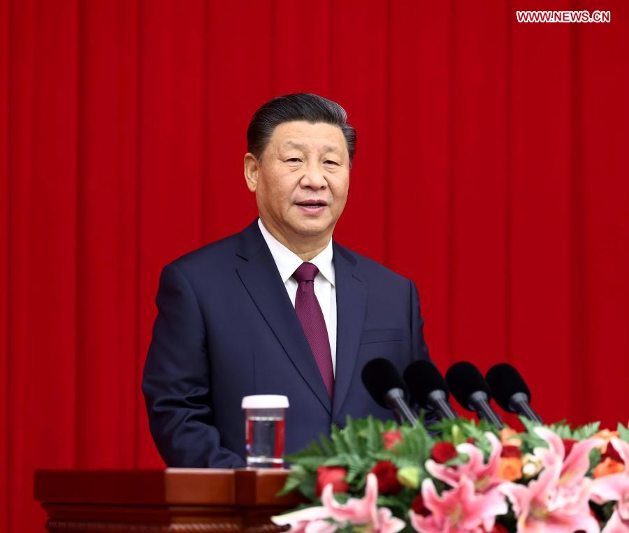 Chinese President Xi Jinping, also general secretary of the Communist Party of China Central Committee and chairman of the Central Military Commission, delivers an important speech at the New Year gathering held by the National Committee of the Chinese People's Political Consultative Conference (CPPCC) in Beijing, capital of China, Dec. 31, 2020. (Xinhua/Ju Peng)