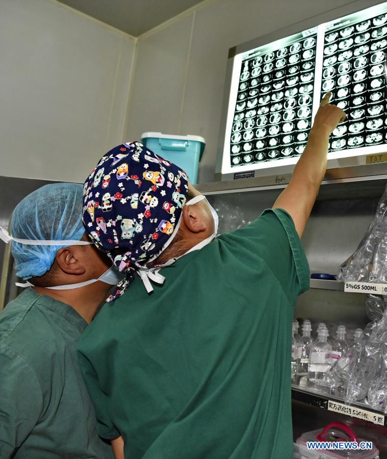 Doctors check the CT image of a hydatid disease patient before operation at Lhasa People's Hospital in Lhasa, capital of southwest China's Tibet Autonomous Region, Dec. 31, 2020. Hydatid disease, or echinococcosis, a parasitic disease caused by tapeworm, is a problem for residents of herding areas in western China. Without treatment, the death rate of the disease is as high as 94 percent. As a major pastoral area, Tibet Autonomous Region reports one of the world's highest frequencies of echinococcosis infections. The disease had been a major cause of poverty for many rural residents in Tibet. To contain transmission of the disease, around 500 medical experts from across the country have been sent to the region since 2016. Together with 3,000 medical support staff, they investigated every household in the region. Any patient diagnosed with hydatid disease now benefit from free care at designated hospitals across the region. A total of 5,057 patients have received surgery over the past four years. Thanks to thorough screening and free treatment, the disease is now effectively contained. The incidence rate of hydatid disease in Tibet has dropped from 1.66 percent in 2016 to 0.26 percent, according to the regional hydatid disease control and prevention office. (Xinhua/Zhang Rufeng)