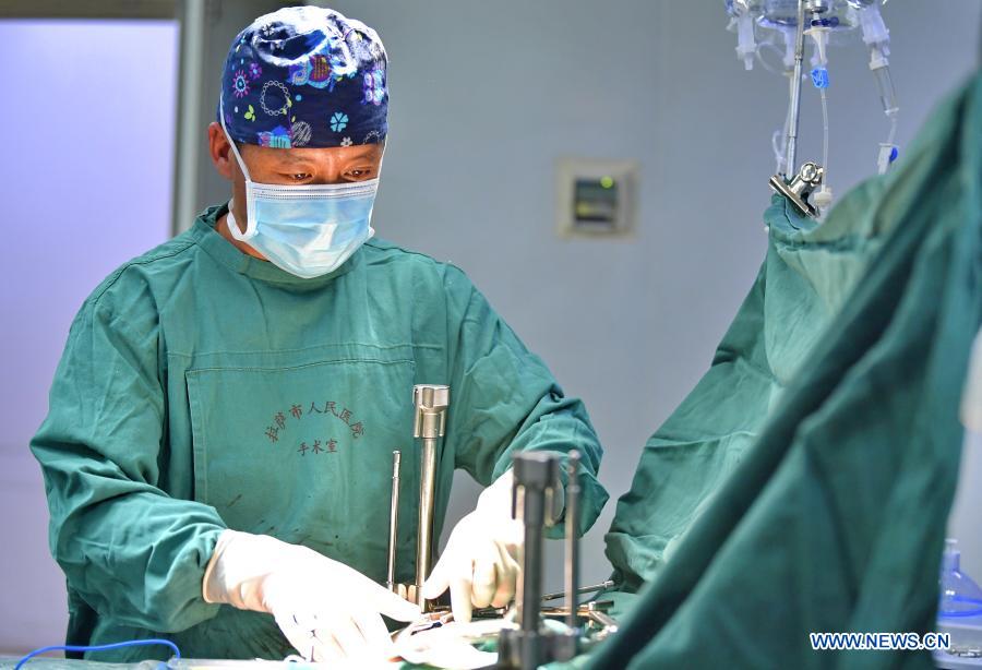 A doctor operates on a hydatid disease patient at Lhasa People's Hospital in Lhasa, capital of southwest China's Tibet Autonomous Region, Dec. 31, 2020. Hydatid disease, or echinococcosis, a parasitic disease caused by tapeworm, is a problem for residents of herding areas in western China. Without treatment, the death rate of the disease is as high as 94 percent. As a major pastoral area, Tibet Autonomous Region reports one of the world's highest frequencies of echinococcosis infections. The disease had been a major cause of poverty for many rural residents in Tibet. To contain transmission of the disease, around 500 medical experts from across the country have been sent to the region since 2016. Together with 3,000 medical support staff, they investigated every household in the region. Any patient diagnosed with hydatid disease now benefit from free care at designated hospitals across the region. A total of 5,057 patients have received surgery over the past four years. Thanks to thorough screening and free treatment, the disease is now effectively contained. The incidence rate of hydatid disease in Tibet has dropped from 1.66 percent in 2016 to 0.26 percent, according to the regional hydatid disease control and prevention office. (Xinhua/Zhang Rufeng)