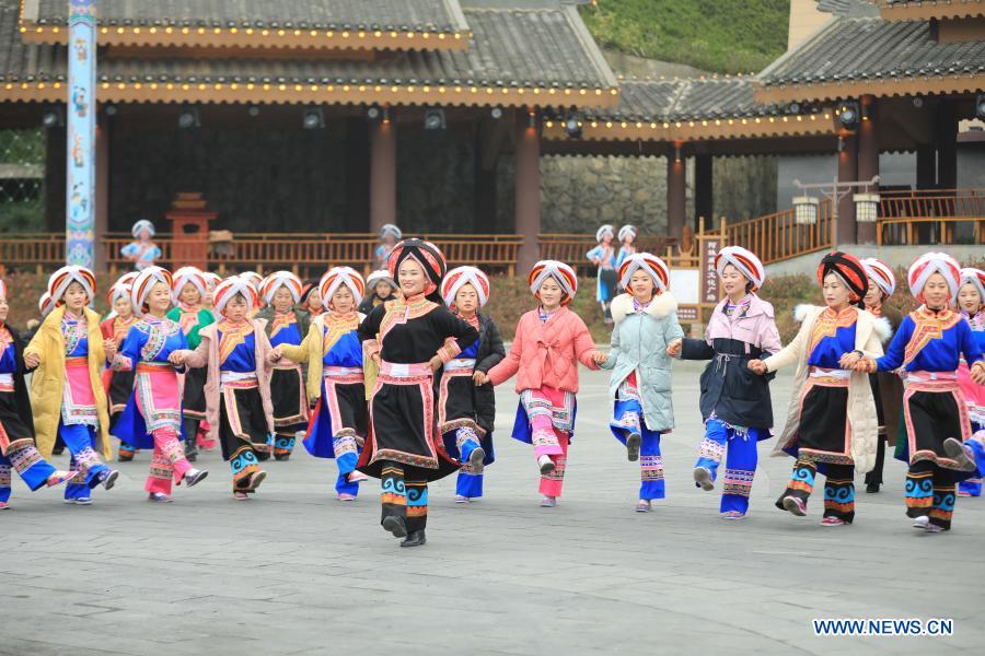 People dance to greet advent of New Year in Ameiqituo Town, Guizhou (4)
