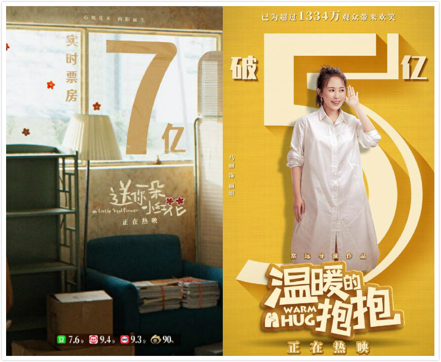 Posters of Chinese movies “A Little Red Flower” (Left) and “Warm Hug” (Right). (Photo from Sina Weibo accounts of “A Little Red Flower” and “Warm Hug”)