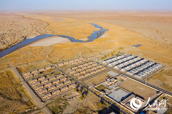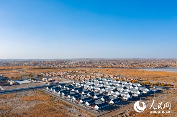 The aerial photo shows the relocation site of Darya Boyi village of northwest China's Xinjiang Uygur Autonomous Region. (People’s Daily Online/Gao Yayong)