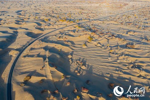 Photo shows a highway that leads to Darya Boyi village of northwest China's Xinjiang Uygur Autonomous Region. (People’s Daily Online/Gao Yayong)