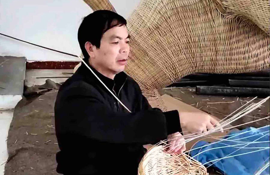 Having produced wickerwork for nearly 40 years, he can make more than 30 wicker crafts per day.