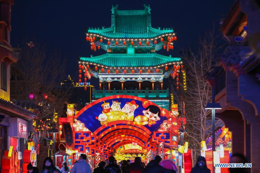 Photo taken on Jan. 4, 2021 shows light decorations at the Old Street area in Qilihe District of Lanzhou, northwest China's Gansu Province. (Xinhua/Ma Xiping)