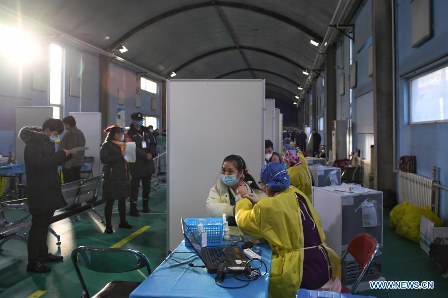 People receive their COVID-19 vaccinations at a temporary vaccination site in Haidian District of Beijing, capital of China, Jan. 6, 2021. (Xinhua/Ju Huanzong)