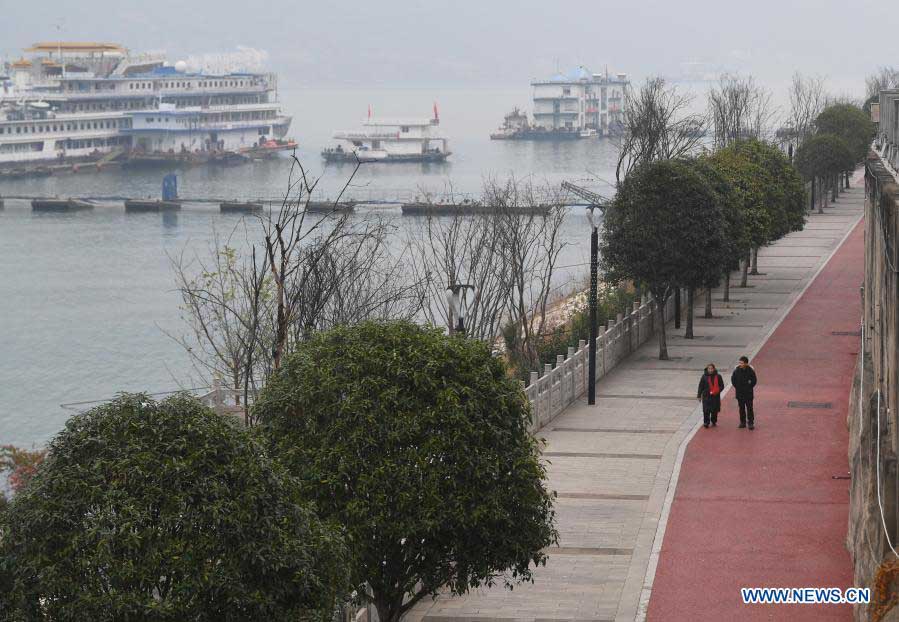 Photo taken on Dec. 27, 2019 shows wild macaques at the Small Three Gorges scenic area in Wushan County, southwest China's Chongqing. In recent years, Chongqing has continuously built up important ecological barriers in the upper reaches of the Yangtze River by strengthening ecological restoration. The ecological environment in the Chongqing section of the Yangtze River has been continuously improved. (Xinhua/Wang Quanchao)