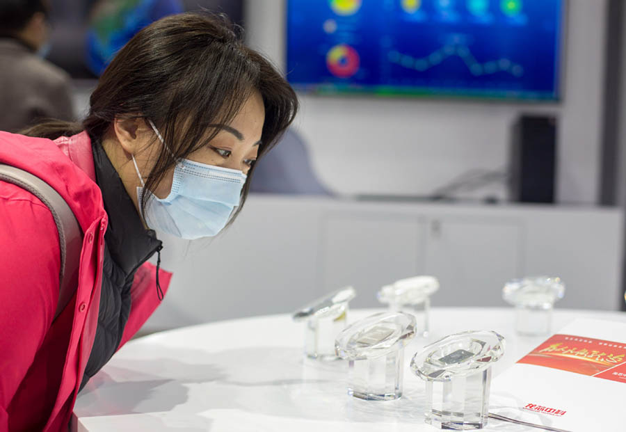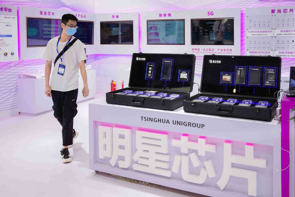A man checks a chip display at the 2020 World Semiconductor Conference in Nanjing, Jiangsu province, on Aug 27. Demand for chips made by Chinese companies has been rising. (Su Yang/For China Daily)