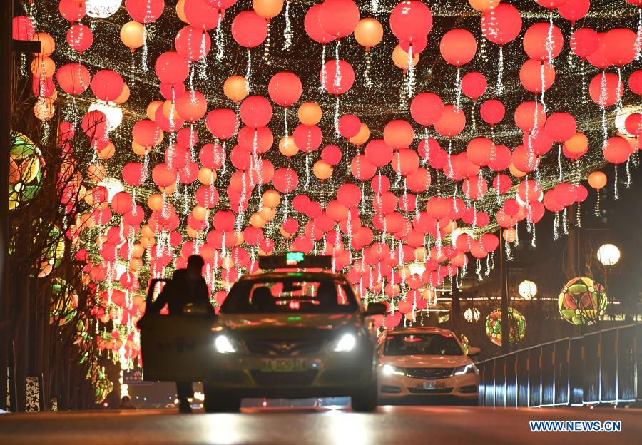 Photo taken on Jan. 14, 2021 shows light decorations for the upcoming Spring Festival in Qujiang New Area in Xi'an, northwest China's Shaanxi Province. The Spring Festival falls on Feb. 12 this year. (Xinhua/Shao Rui)