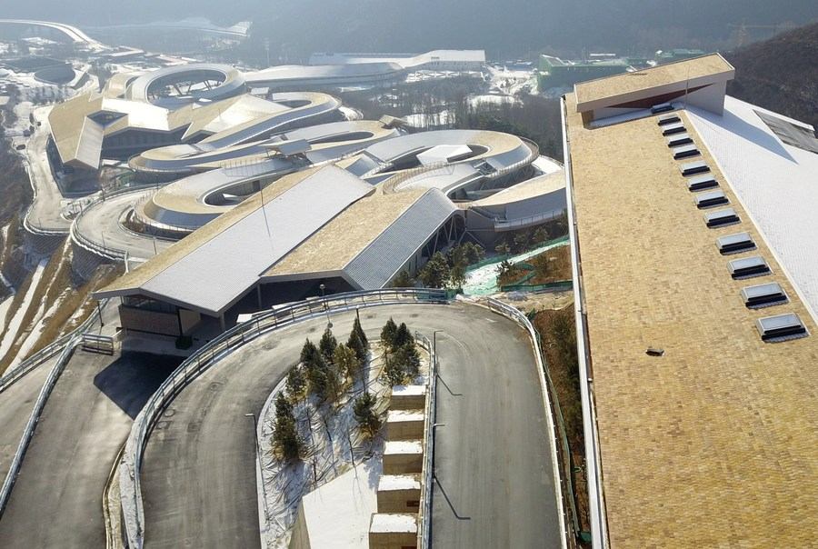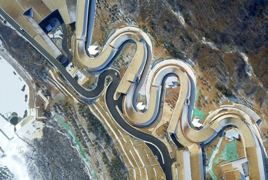 Aerial photo taken on Jan. 19, 2021 shows the National Sliding Center in Yanqing District, Beijing. (Xinhua/Zhang Chenlin)