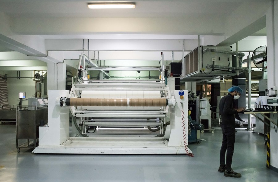 A worker is seen at a workshop of Egypt Yanjiang New Material Co., Ltd. at China-Egypt TEDA Suez Economic and Trade Cooperation Zone in Ain Sokhna, Egypt, Jan. 14, 2021. (Xinhua/Wu Huiwo)