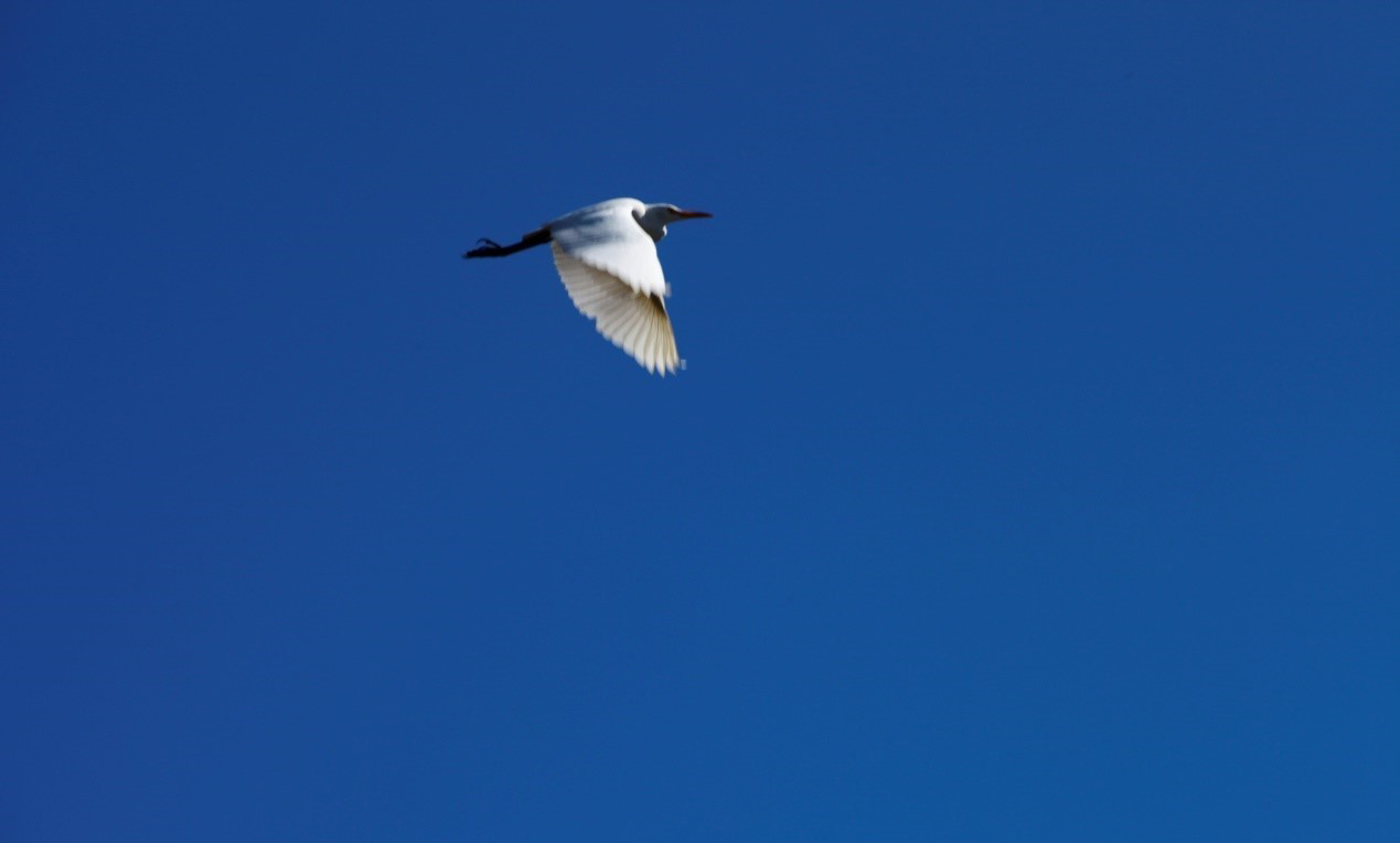 A water bird soars against the deep blue sky in Beihai Wetland, Tengchong, Yunnan Province, Dec. 8, 2020. (People's Daily Online/Fu Hao)