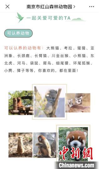 A screenshot from the website of Nanjing Hongshan Zoo shows an article asking for support from the public through “adopting” the zoo animals.
