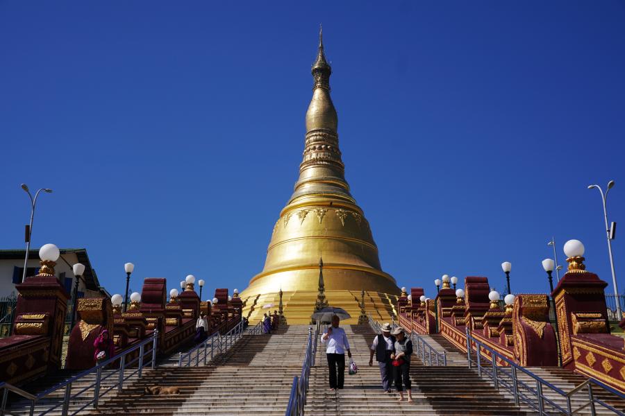Photo taken on Jan. 14, 2020 shows the Uppatasanti Pagoda, a prominent landmark in Nay Pyi Taw, Myanmar. (Xinhua/Wang Shen)