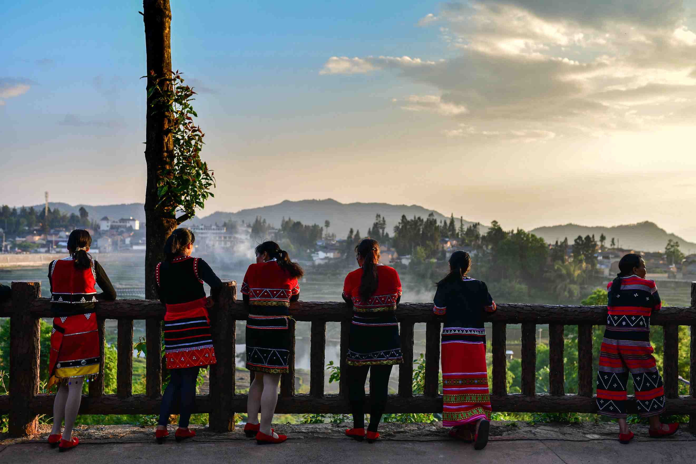 Villagers are seen at a square in Simola Wa Village in Qingshui Town of Tengchong City, southwest China's Yunnan Province, May 15, 2020. (Xinhua/Hu Chao)