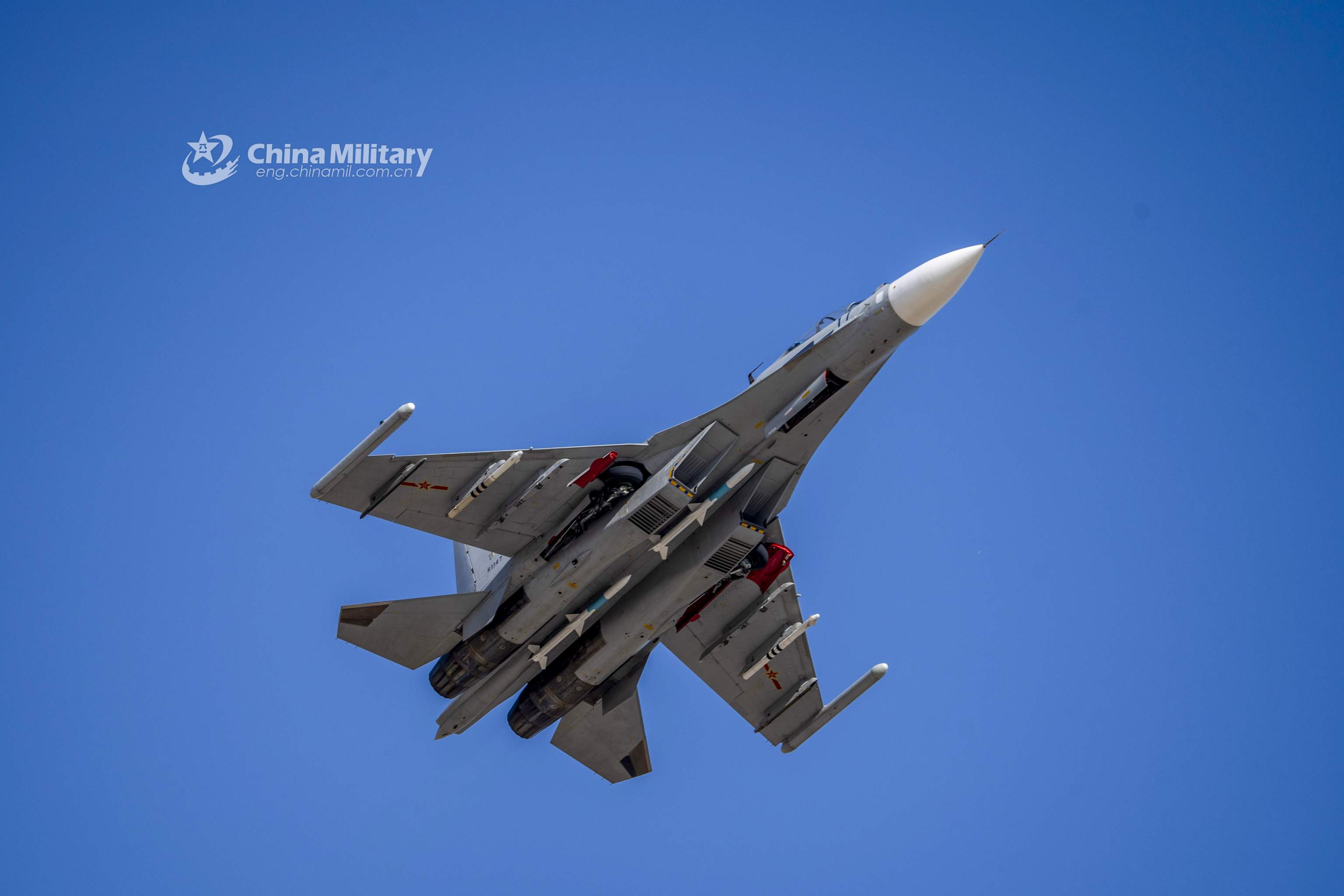 A fighter jet attached to an aviation brigade of the air force under the PLA Eastern Theater Command soars in the sky during a round-the-clock flight training exercise in mid January, 2021. (eng.chinamil.com.cn/Photo byTian Jianmin)