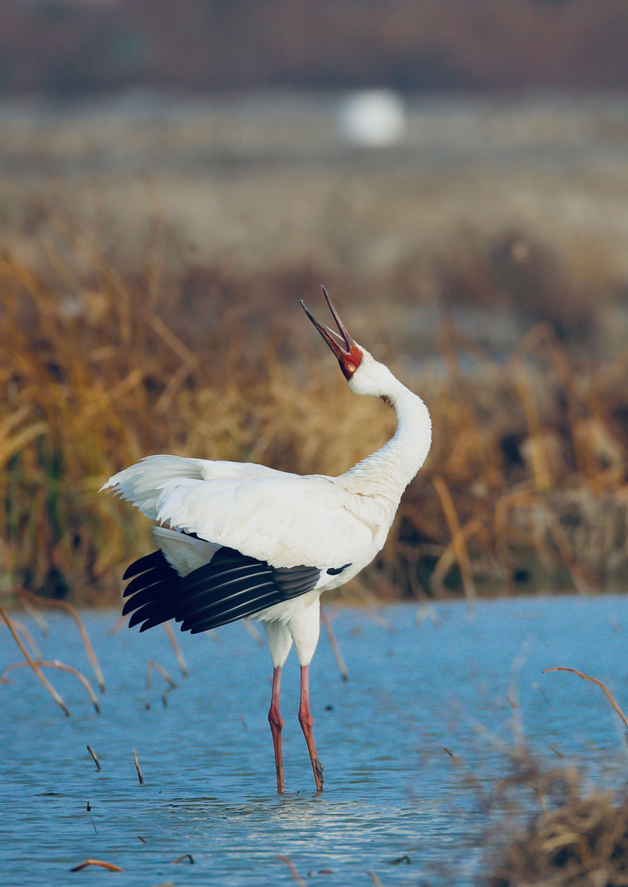 A white crane forages in shoals in Shishi Wetland Park, Quanzhou, southeast China's Fujian Province. (People's daily Online/ Tian Mi)