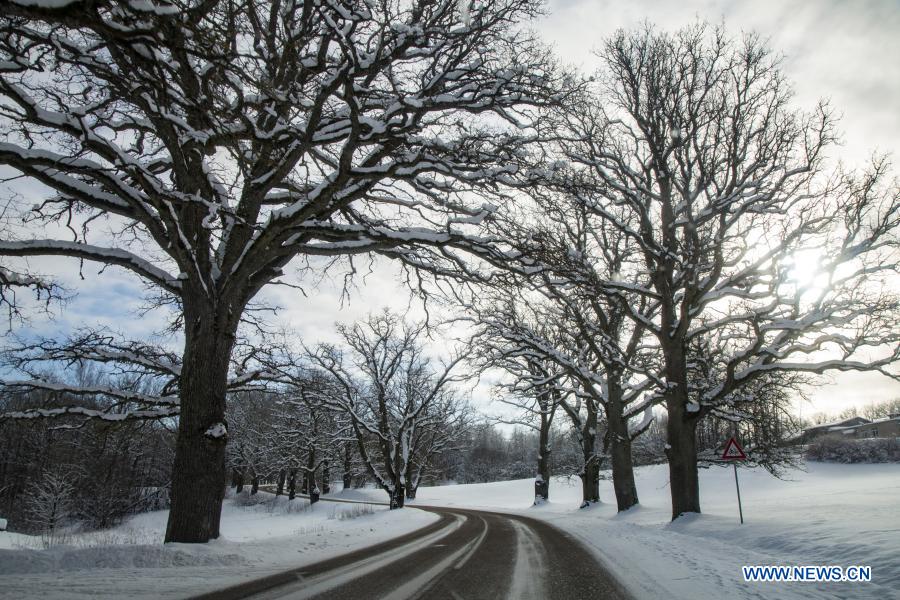 Photo taken on Feb. 7, 2021 shows the winter scenery in Cesis, Latvia. (Photo by Edijs Palens/Xinhua)
