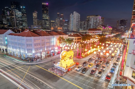 Lunar New Year lantern decorations are seen in Singapore's Chinatown area on Feb. 10, 2021. (Photo by Then Chih Wey/Xinhua)