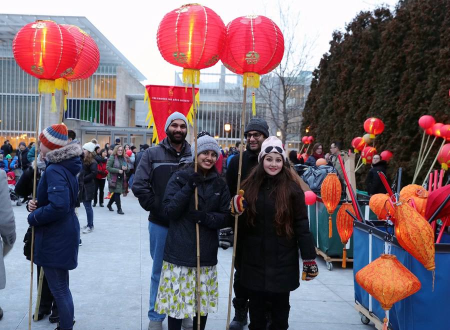 People participate in a lantern procession to celebrate Chinese Lunar New Year in Chicago, the United States, on Feb. 8, 2020. (Xinhua/Wang Ping)