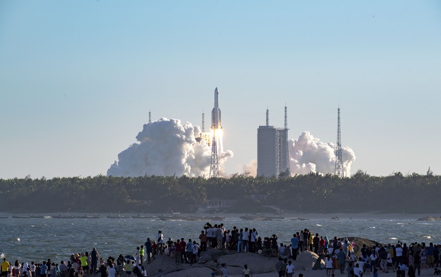 China's new large carrier rocket Long March-5B blasts off from Wenchang Space Launch Center in south China's Hainan Province, May 5, 2020. (Xinhua/Guo Cheng)