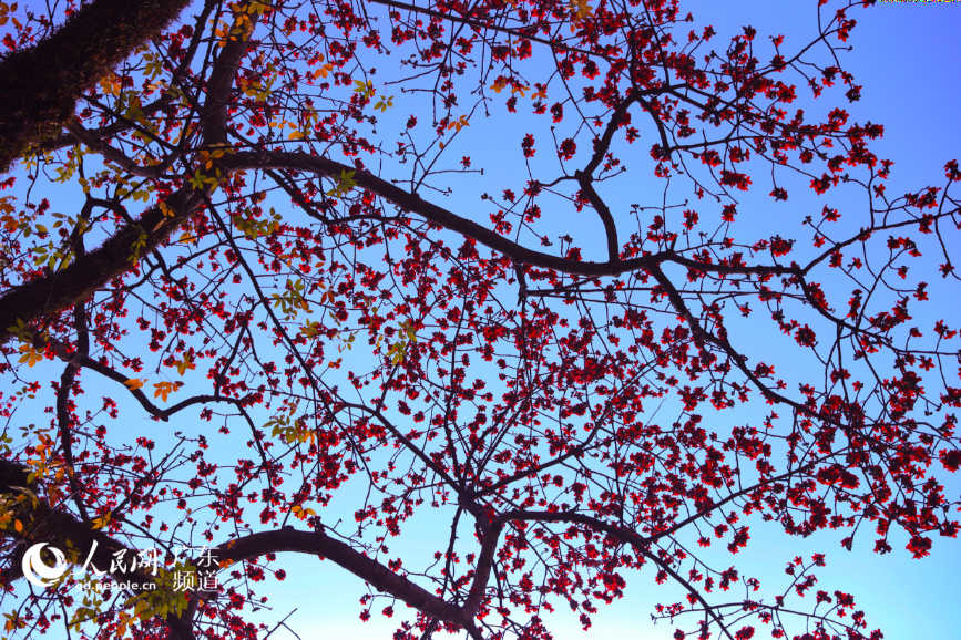 The Kapok flower, the city flower of Guangzhou, southern China’s Guangdong Province, has blossomed across the city due to rising temperatures in early spring. Dr. Sun Yat-sen's Memorial Hall, with its many brilliant red blossoms covering the Kapok trees, has attracted hordes of visitors. (People's Daily Online/Chen Wenxia)