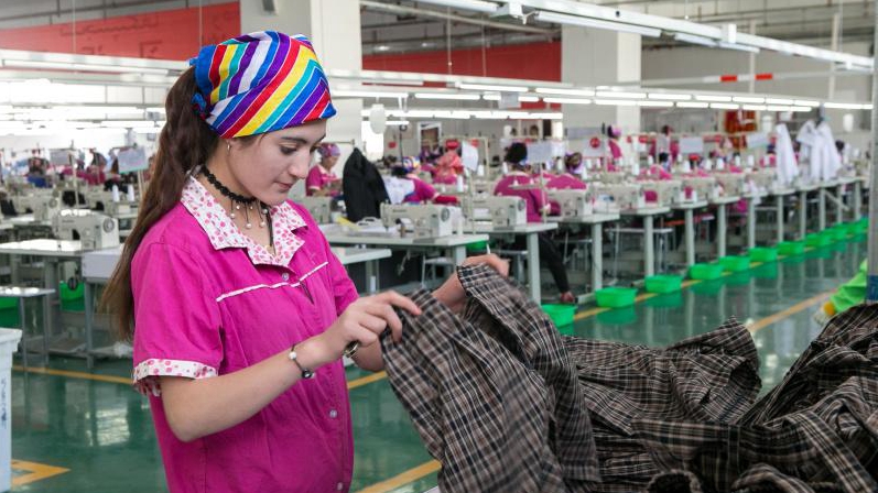 A woman works at a factory in Kashgar, northwest China's Xinjiang Uygur Autonomous Region. (Photo/Xinhua)