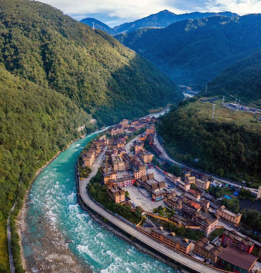 Aerial photo taken on Oct. 31, 2020 shows a view of Dulongjiang Township in Gongshan Derung and Nu Autonomous County, southwest China's Yunnan Province. (Xinhua/Hu Chao)