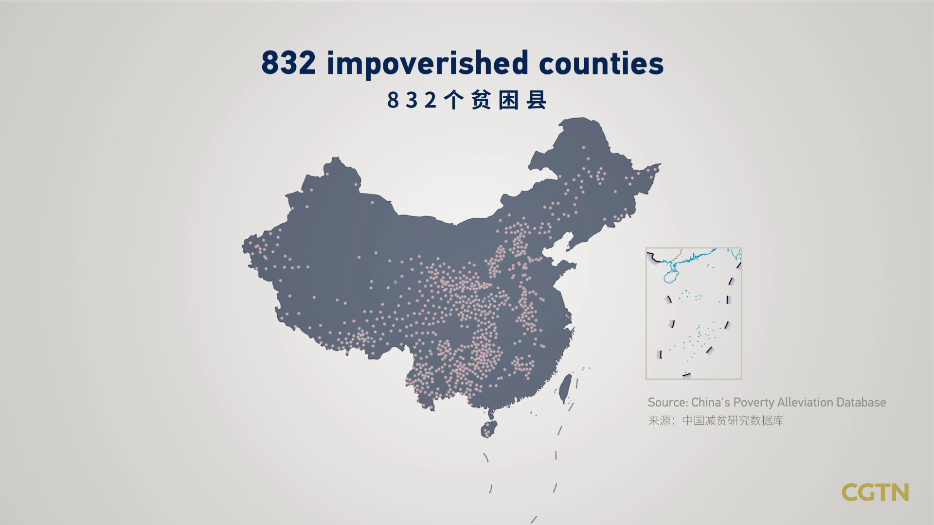 On November 23, 2020, China's last nine impoverished counties, all in Guizhou, were removed from the poverty list, meaning that all the country's 832 poor counties had been lifted out of absolute poverty.