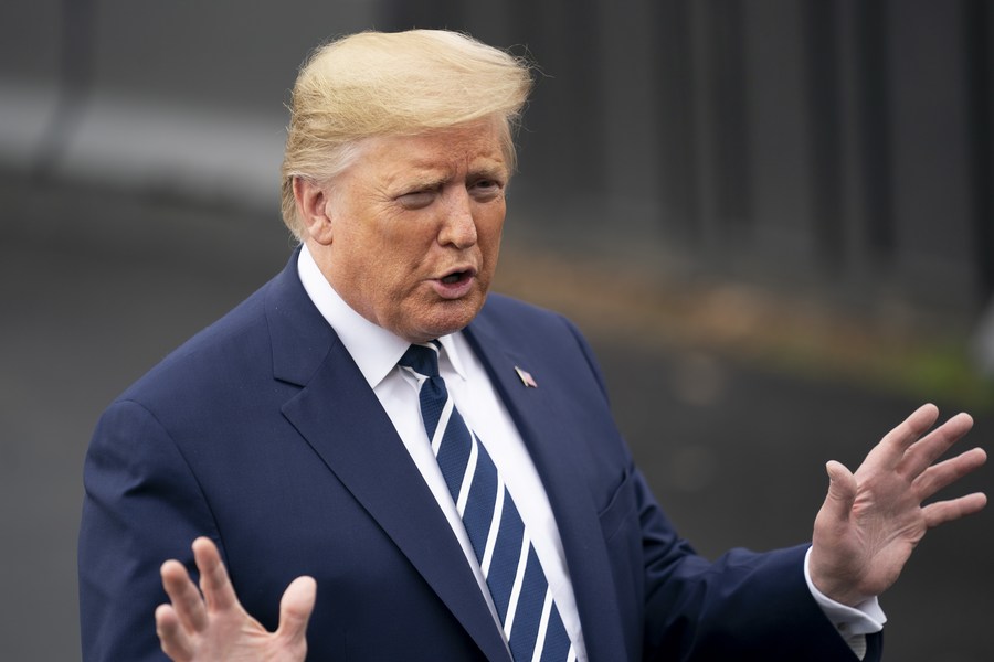 Former U.S. President Donald Trump speaks to reporters before leaving the White House in Washington D.C., the United States, on March 3, 2020. (Xinhua/Liu Jie)