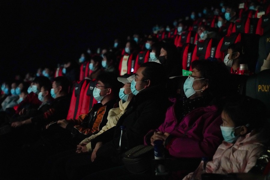 People watch a movie at a cinema in Beijing, capital of China, Feb. 17, 2021. (Xinhua/Chen Zhonghao)