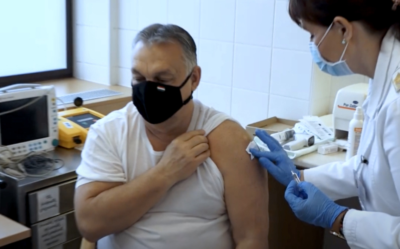 "Vaccinated!" Orban wrote on Facebook, posting a photo of himself getting the shot, two days after Hungarian President Janos Ader got his shot.