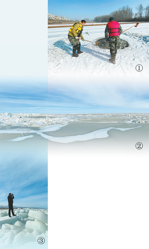 According to Li, there are eight points along the section from which he and his team mates can get onto the frozen lake, and the patrol team inspects at least four of these points every day.