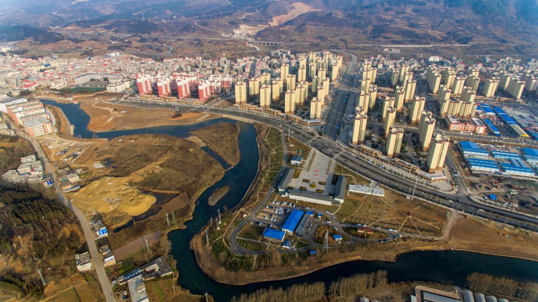 Aerial photo taken on Feb. 3, 2021 shows the view of Jing'an District, a large-scale resettlement area in Zhaotong, southwest China's Yunnan Province. (Xinhua/Jiang Wenyao)