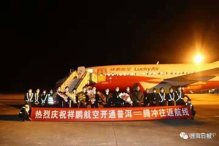 At 21:25 pm on February 21, with the smooth landing of Lucky Air Flight 8L9641, the first new route of Pu’er Simao Airport in 2021 - the direct flight from Pu’er to Tengchong, was officially opened.