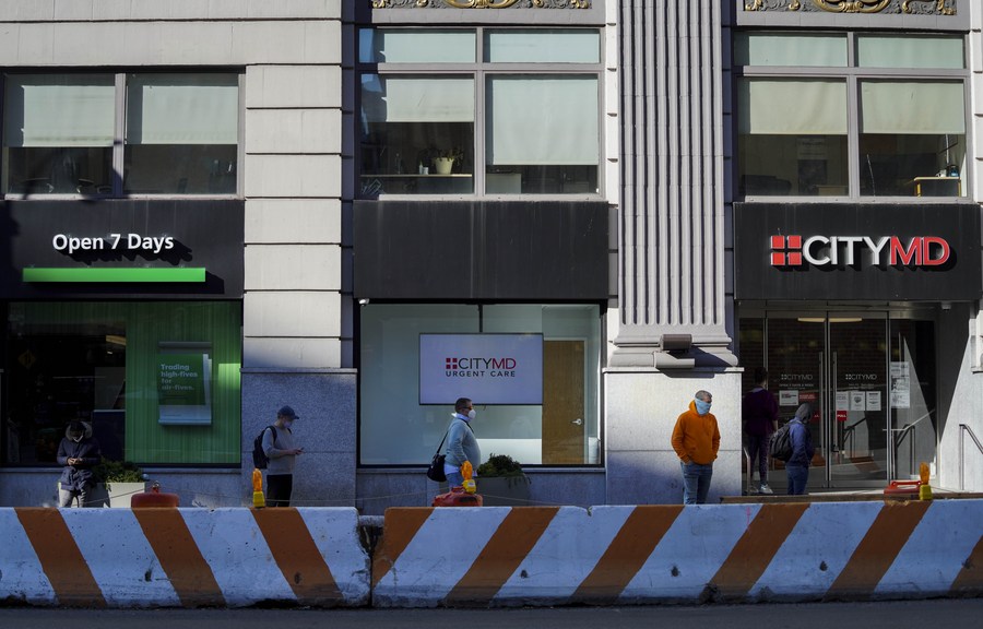 People queue to receive COVID-19 test in New York, the United States, Nov. 27, 2020. (Xinhua/Wang Ying)