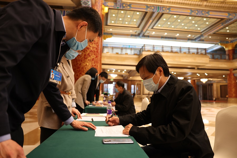 Lei Jun, the founder and CEO of Chinese tech giant Xiaomi, who is also a deputy to the National People's Congress, China's top legislature, registers on Wednesday to attend the fourth session of the 13th NPC in Beijing ahead of its opening on Friday. PAN ZHIWANG/FOR CHINA DAILY