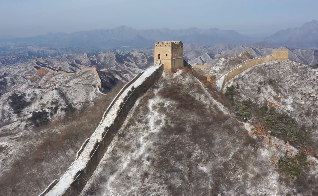 Temperature drop brought snow to the Jinshanling Great Wall in Luanping County of Chengde City, North China's Hebei Province on Monday.