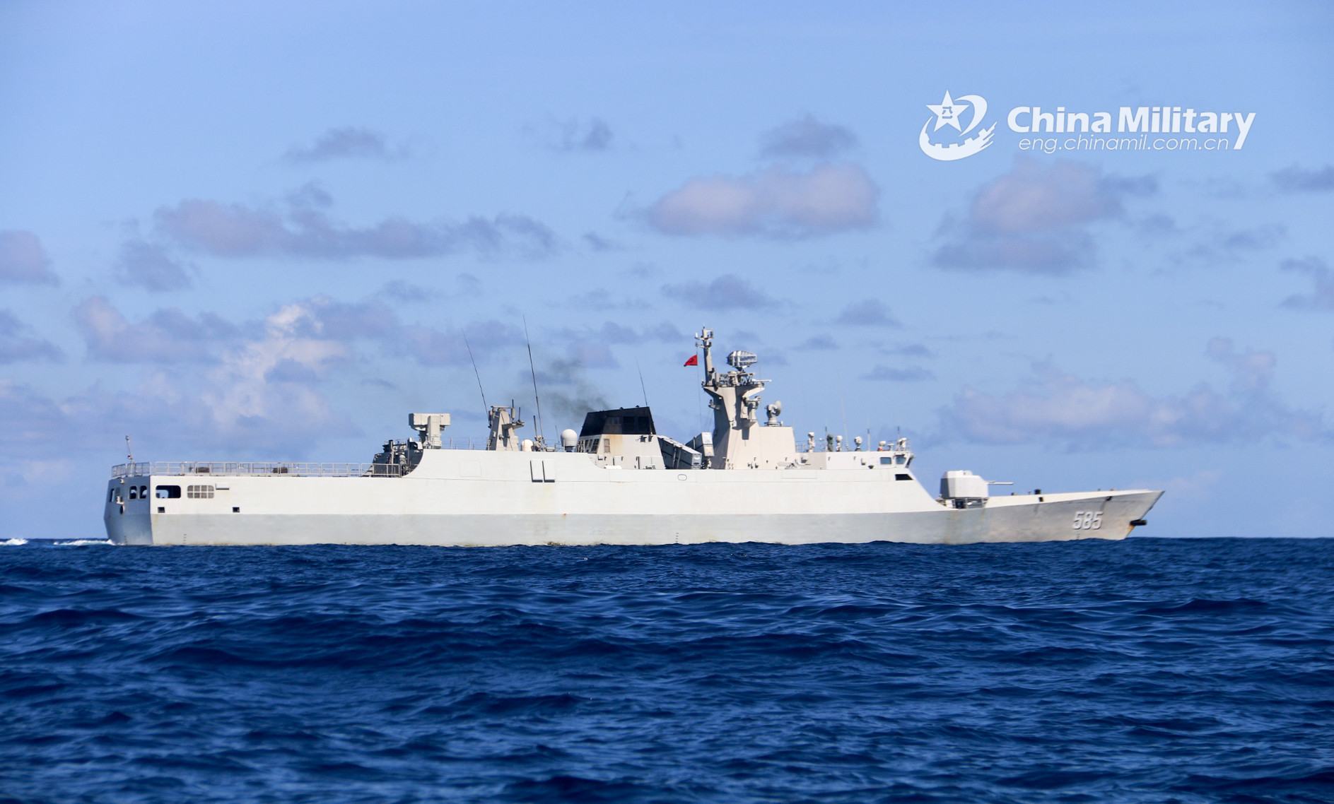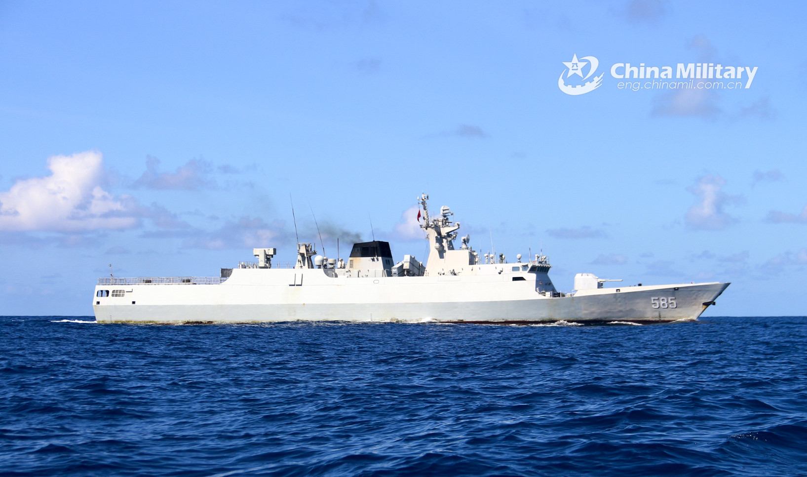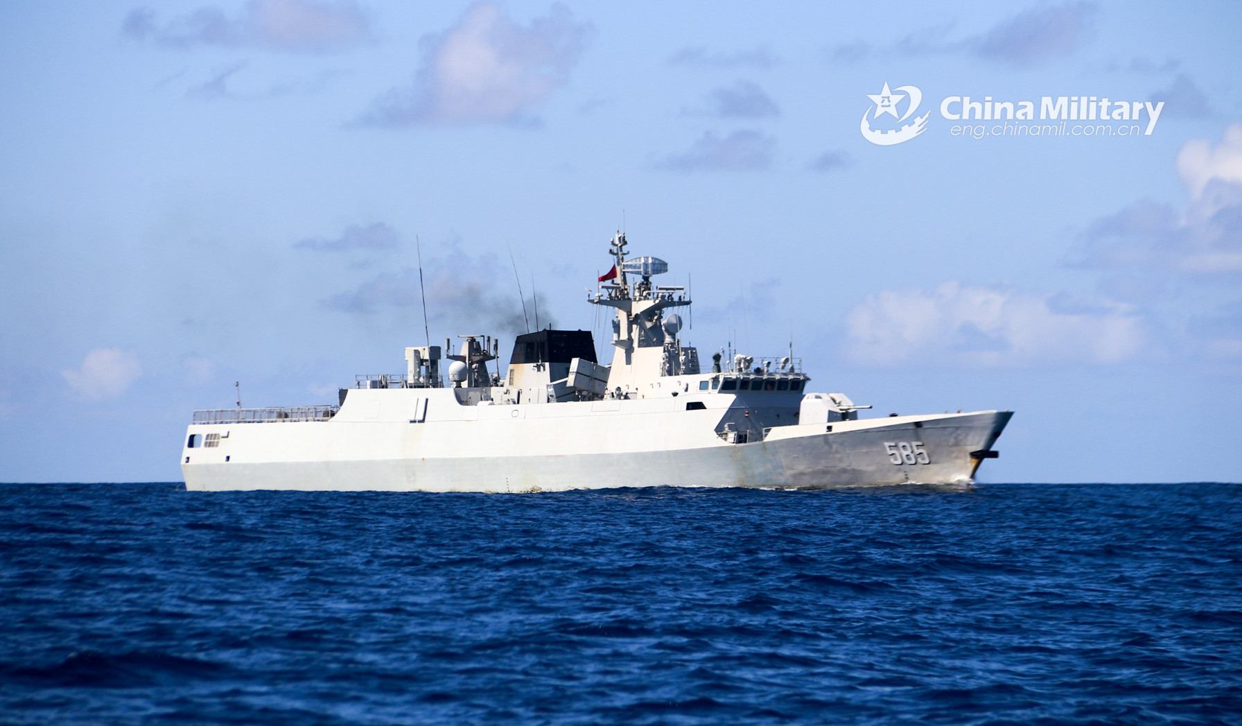 The guided-missile frigate Baise (Hull 585) attached to a frigate flotilla with the navy under the PLA Southern Theater Command steams in waters of the South China Sea during a combat-readiness maritime patrol mission on February 16, 2021. (eng.chinamil.com.cn/Photo by Cai Shengqiu)