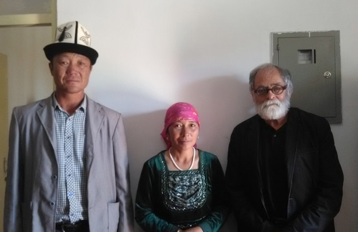 Maxime Vivas with a Uyghur couple. (Photo provided by Maxime Vivas)