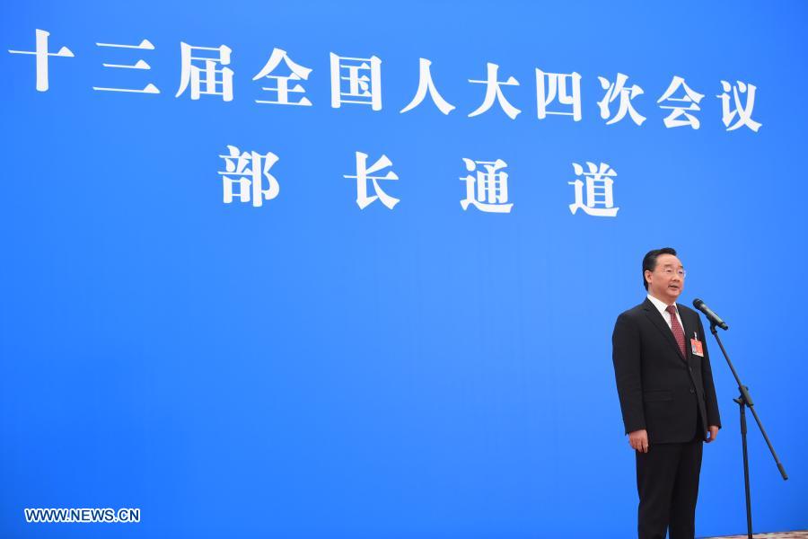 Minister of Agriculture and Rural Affairs Tang Renjian gives an interview via video link after the opening meeting of the fourth session of the 13th National People's Congress (NPC) in Beijing, capital of China, March 5, 2021. (Xinhua/Jin Liangkuai)
