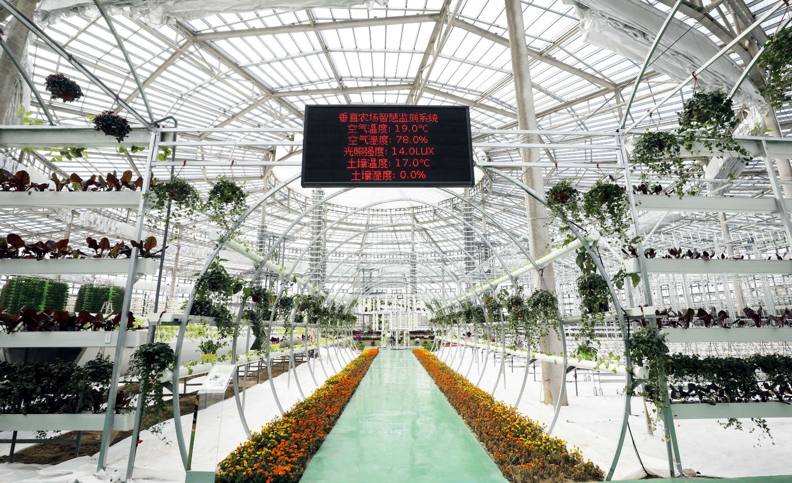 Photo taken on Nov. 23, 2020 shows an intelligent monitoring system installed in a modern agricultural park in east China's Jiangsu Province to adjust temperature and sunlight intensity. (Photo by Hua Xuegen/People's Daily Online)