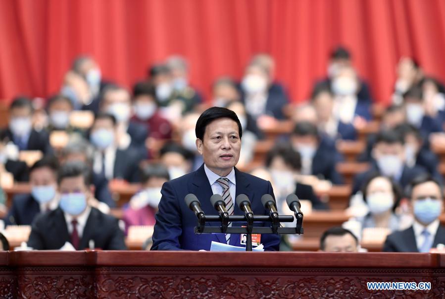 Xie Fuzhan, a member of the 13th National Committee of the Chinese People's Political Consultative Conference (CPPCC), delivers a speech at the second plenary meeting of the fourth session of the 13th CPPCC National Committee at the Great Hall of the People in Beijing, capital of China, March 7, 2021. (Xinhua/Gao Jie)
