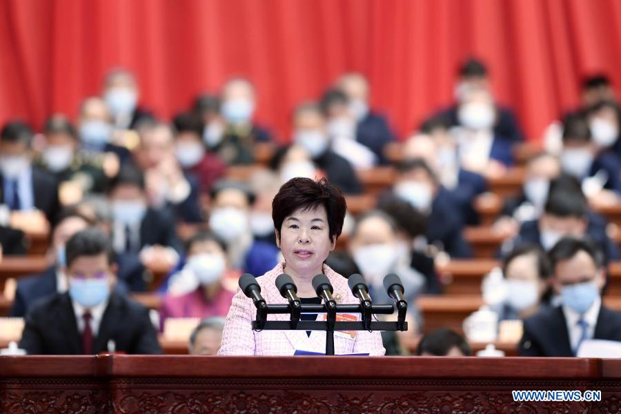 Qin Boyong, a member of the Chinese People's Political Consultative Conference (CPPCC) National Committee, delivers a speech on behalf of the Central Committee of the China National Democratic Construction Association at the second plenary meeting of the fourth session of the 13th CPPCC National Committee at the Great Hall of the People in Beijing, capital of China, March 7, 2021. (Xinhua/Gao Jie)