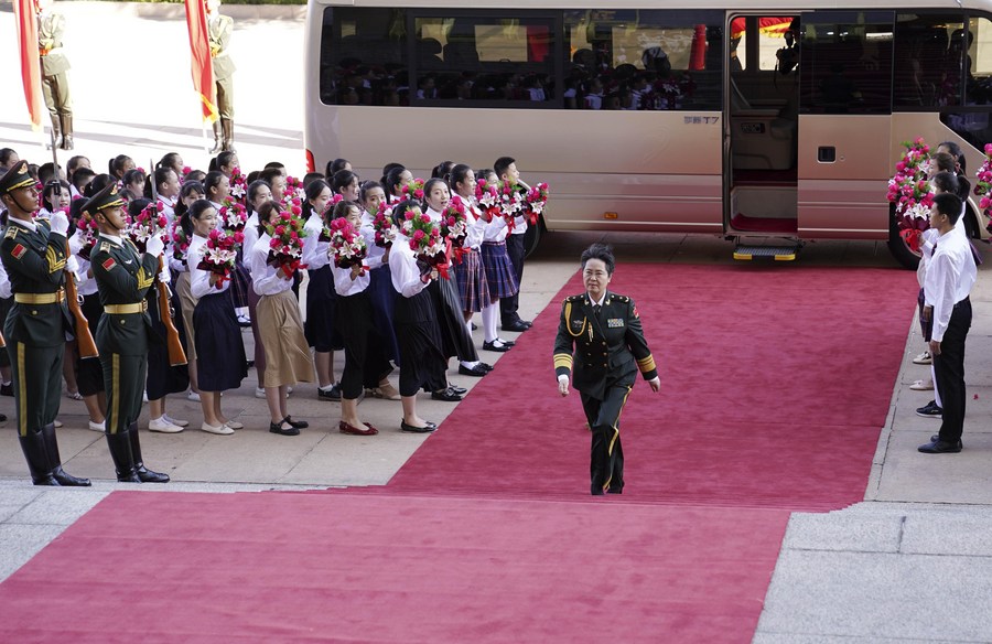 Chen Wei, recipient of the "People's Hero" national honorary title, arrives at the Great Hall of the People in Beijing, capital of China, Sept. 8, 2020.(Xinhua/Yin Bogu)