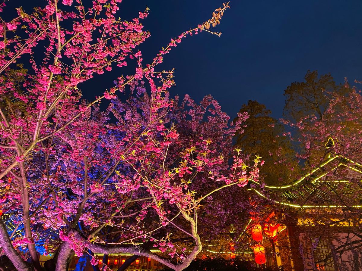 The cherry blossom gala in Moshan Scenic Spot in Wuhan this year features photo exhibitions and sculptures specially designed to pay homage to those who dedicated their lives to fighting the pandemic for more than a year.