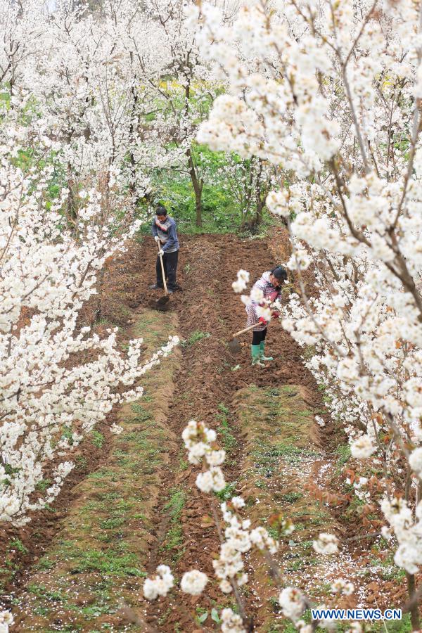 Farmers work in the field in Bijie City, southwest China's Guizhou Province, March 10, 2021. (Photo by Wang Chunliang/Xinhua)