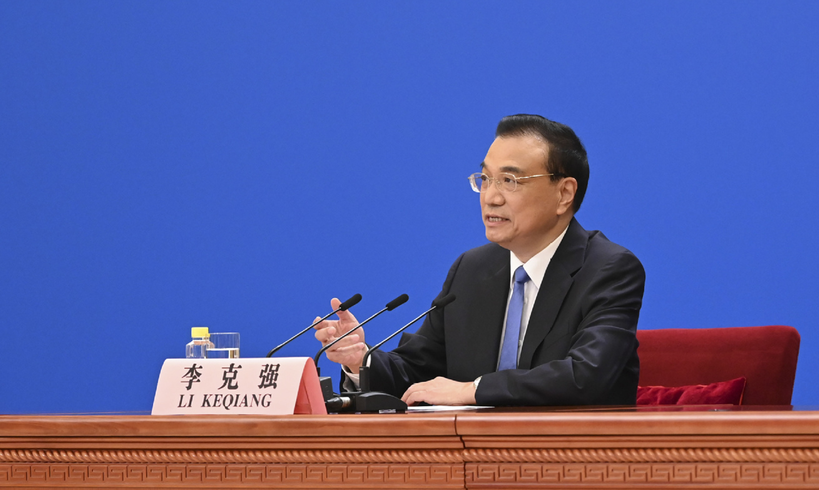 Premier Li Keqiang meets the press via video link after the closing of the fourth session of the 13th National People's Congress at the Great Hall of the People in Beijing, March 11, 2021. [Photo/Xinhua]