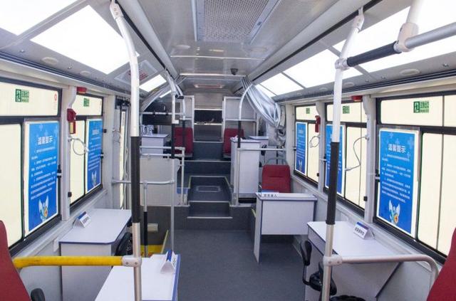 The inside of the vehicle resembles that of a bus, only with fewer seats. It has two vaccine storage boxes that are able to transmit data and refrigerate the vaccines at a constant temperature, connected to an electric charge with a voltage of 220 volts, according to Beijing-headquartered commercial vehicle manufacturer Foton Motor, the vehicle’s maker.